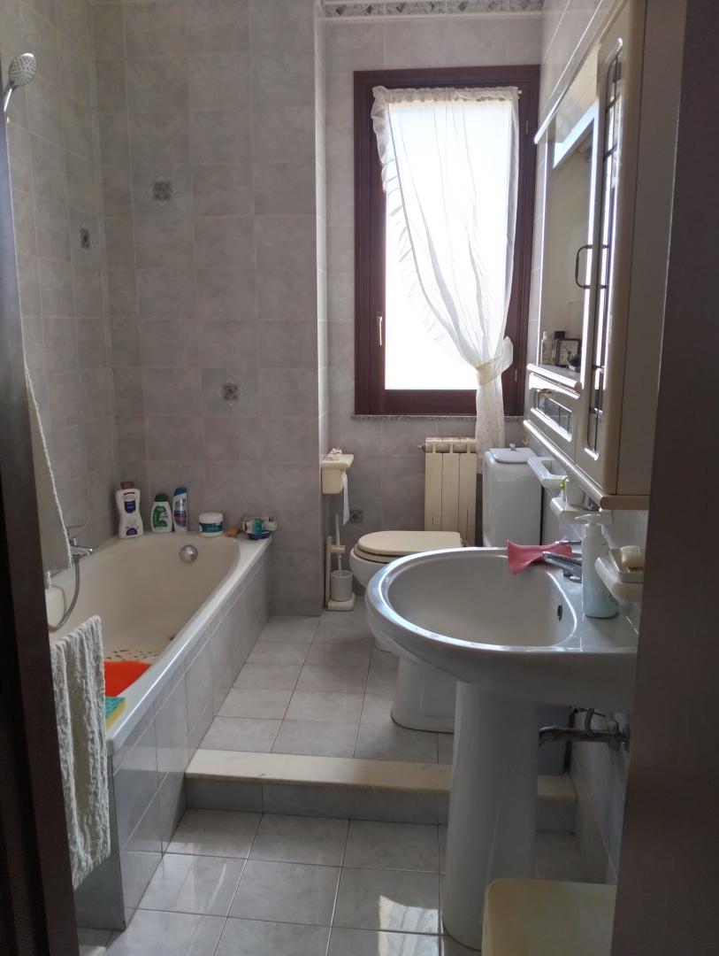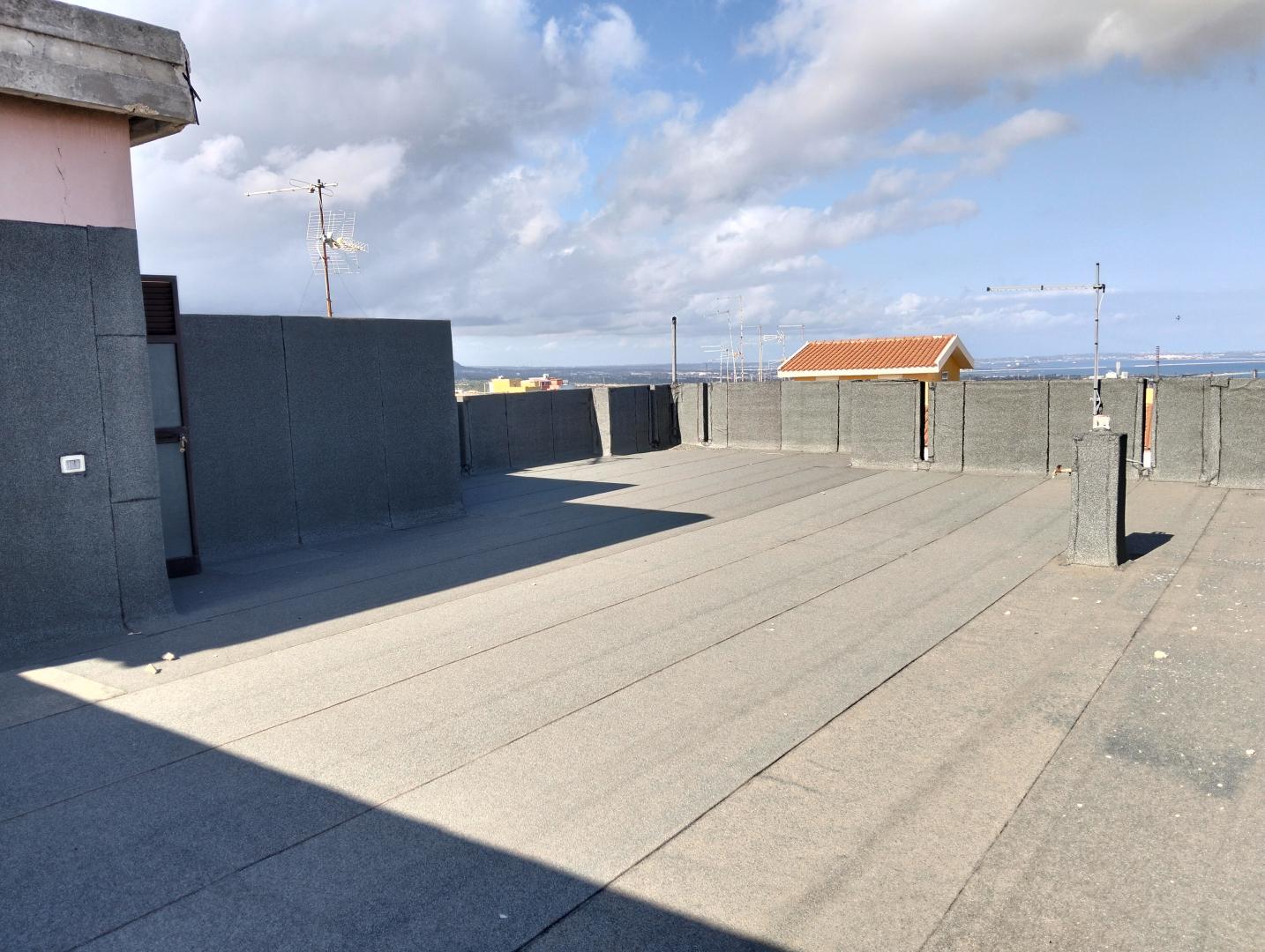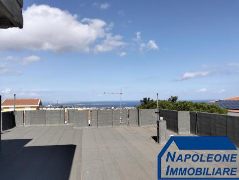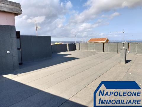 Delizioso trilocale di circa 75 mq, situato al 2° piano ed ultimo di una palazzina di soli 2 piani. L'appartamento composto da soggiorno, cucina, comoda camera matrimoniale, cameretta e bagno con tre balconi, uno di pertinenza del soggiorno, uno di ampia metratura che serve l'uscita della cucina e della cameretta, uno di pertinenza della camera matrimoniale. La proprietà si completa con un garage pavimentato di circa 18 mq, soppalcabile e con serranda motorizzata, ed un terrazzo di proprietà esclusiva di circa 100 mq . Questo terrazzo rappresenta un ulteriore spazio esterno vivibile e sfruttabile con diverse soluzioni, una rara opportunità , un plus unico difficilmente reperibile in altri appartamenti della zona. L'appartamento già dotato di porta blindata.